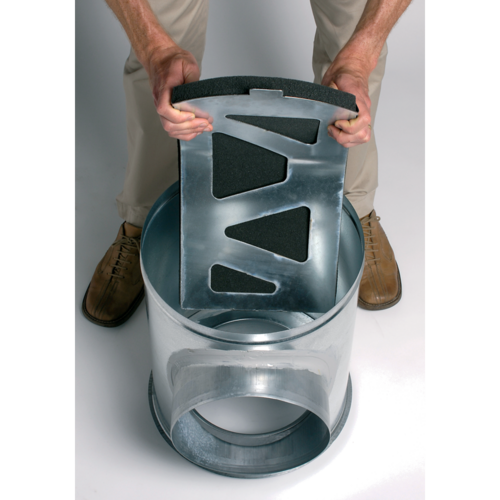 - aéraulique : déflecteur en tôle démontable sans aucun outil qui permet de réduire de 35% les pertes de charge, soit -7 Pa à 4 m/s.