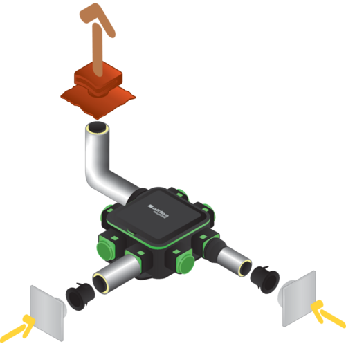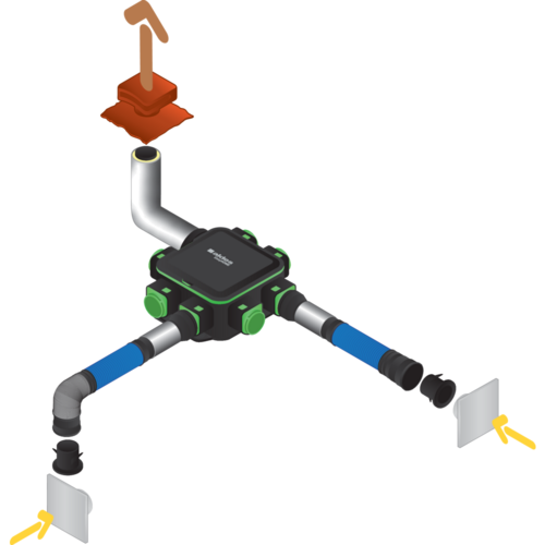 - 7 piquages numérotés et 100% modulaires: conçus pour les modules de régulation Ø 125 mm cuisine et jusqu'à 6 pièces humides complémentaires (RCC 125/80 disponible),