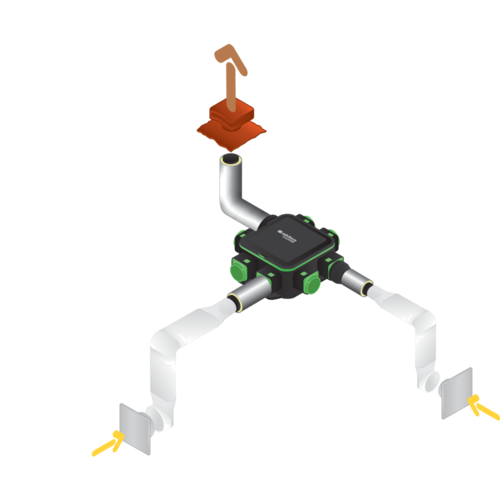 C'est une solution de ventilation individuelle intelligente qui couvre tous les espaces de la maison en modulant pièce par pièce l'extraction de l'air et qui permet, à l'aide de la fonction autodiagnostic, de garantir les débits aux bouches et ainsi la performance de son installation.