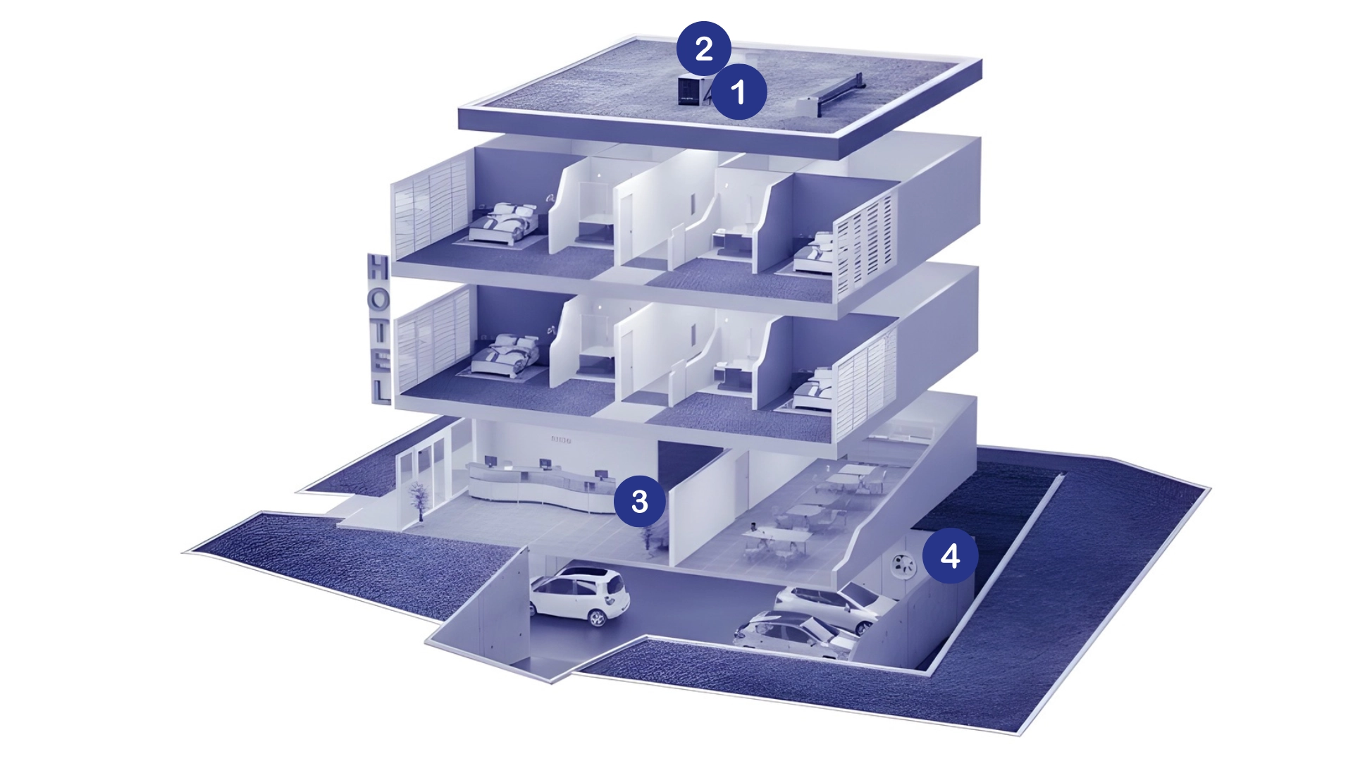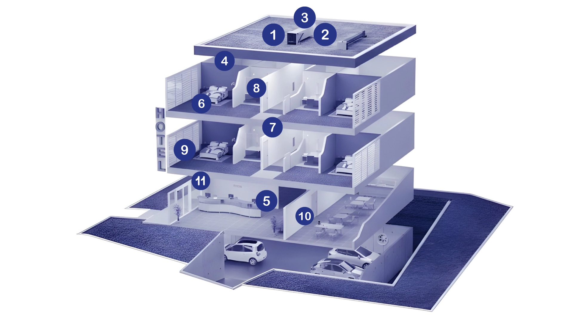 Aldes propose des solutions de ventilation et de purification d’air spécialement conçues pour les hôtels, en construction ou rénovation. Nos systèmes garantissent un air intérieur sain (odeurs, CO₂, COV, particules fines) et améliorent le confort, la satisfaction et la fidélisation des clients. Grâce à des technologies discrètes, économes en énergie et faciles à maintenir, Aldes devient la référence pour optimiser la qualité de l’air dans les établissements hôteliers.